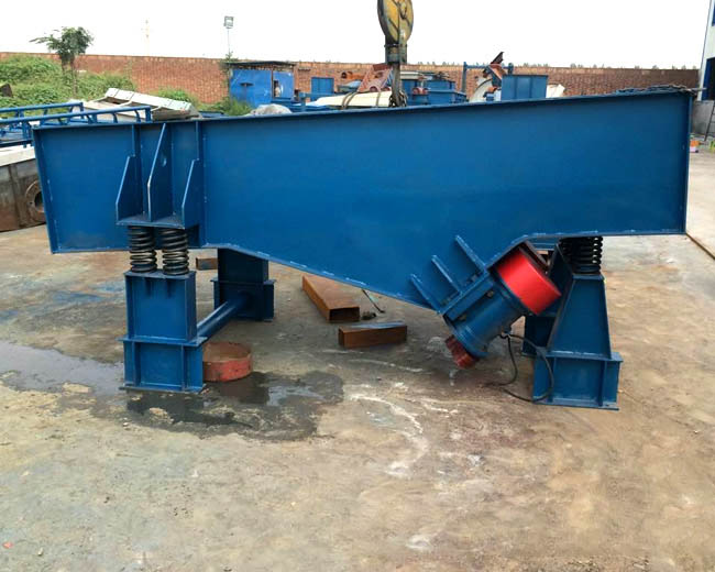 棒條振動給料機主要由一對性能參數(shù)相同的振動電機為激振源,當(dāng)兩臺振動電機以相同的角速度作反向運轉(zhuǎn)時,其偏心塊所產(chǎn)生的慣性力在特定的相位重復(fù)疊加或抵消。從而產(chǎn)生巨大的合成激振動力,使機體在支承彈簧上作強制振動,并以此振動為動力,帶動物料在料槽上作滑動及拋擲運動,從而使物料不斷前移而達到給料目的。當(dāng)物料通過槽體上的篩條時,較小料可透過篩條間隙而落下,不經(jīng)過下道的破碎工序,起到篩分的效果。