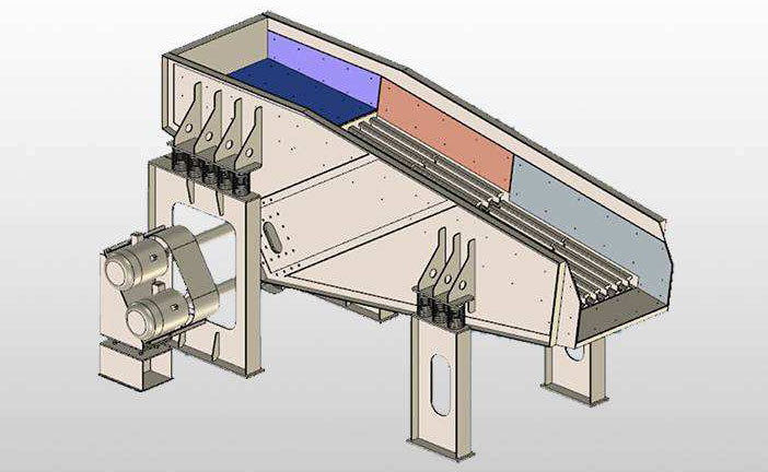 雙質體振動給礦機:采用雙質體近共振慣性振動原理。上下布置單排或雙排剪切橡膠彈簧,由下壓板通過螺栓連接在平衡體上,再由左右側板與槽體連接。結構緊湊、衡壓平穩(wěn)啟動、不受槽體物料載重和卡死的影響 給礦粒度(0-850mm),給料量大(8-1800t/h),可以配置無級變頻器,實現(xiàn)變頻給料、配料,遠距離微機操作控制。
