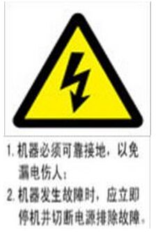 保持各安全標(biāo)志清晰、易見,若有磨損、丟失必須及時(shí)與廠商取得聯(lián)系索取、更換。(見圖1) 2、電器安全事項(xiàng)