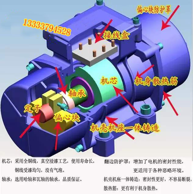 7、可根據(jù)振動電機的安裝方式改變激振力的方向;