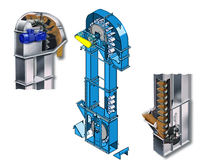 NE提升機(jī)主要是將料斗安裝在鏈條上,然后隨著齒輪的滾動,帶動鏈條的運(yùn)動從而帶動了料斗進(jìn)行旋轉(zhuǎn)移動,利用這樣的運(yùn)動軌跡料斗剛好能夠完成,進(jìn)料口物料的流入,從而實(shí)現(xiàn)料斗的入料,隨著鏈條的運(yùn)動和料斗的翻轉(zhuǎn)從而實(shí)現(xiàn)了物料的輸送于卸料。